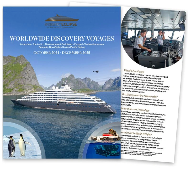 Look inside the luxurious interiors to see how we’ve gone above and beyond to make Scenic Eclipse I and II in a class of their own. Explore the Discovery Yachts, imagining how you’ll spend your time cruising through deep blue waters and breathtaking scenery, in ultra-luxury.