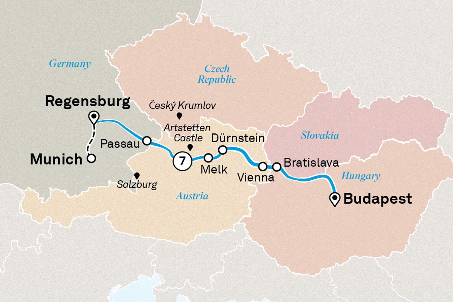 Our most popular Danube cruise immerses you in the proud traditions and diverse cultures that span its length. Cruising between the ancient city of Regensburg and vibrant Budapest, you’ll travel through four countries and experience countless moments of wonder with Scenic’s signature Nth Degree service. Palaces, monasteries, museums and cathedrals await, each highlighting the unique story of their nation. Taste beer in Bavaria, visit the picturesque medieval village of Ceský Krumlov, sip wine in the Wachau Valley, marvel at the majestic National Opera House in Budapest and enjoy an exclusive private concert in the Arsenal Military Museum, all with the luxury of the quiet season and fewer crowds at renowned locations.