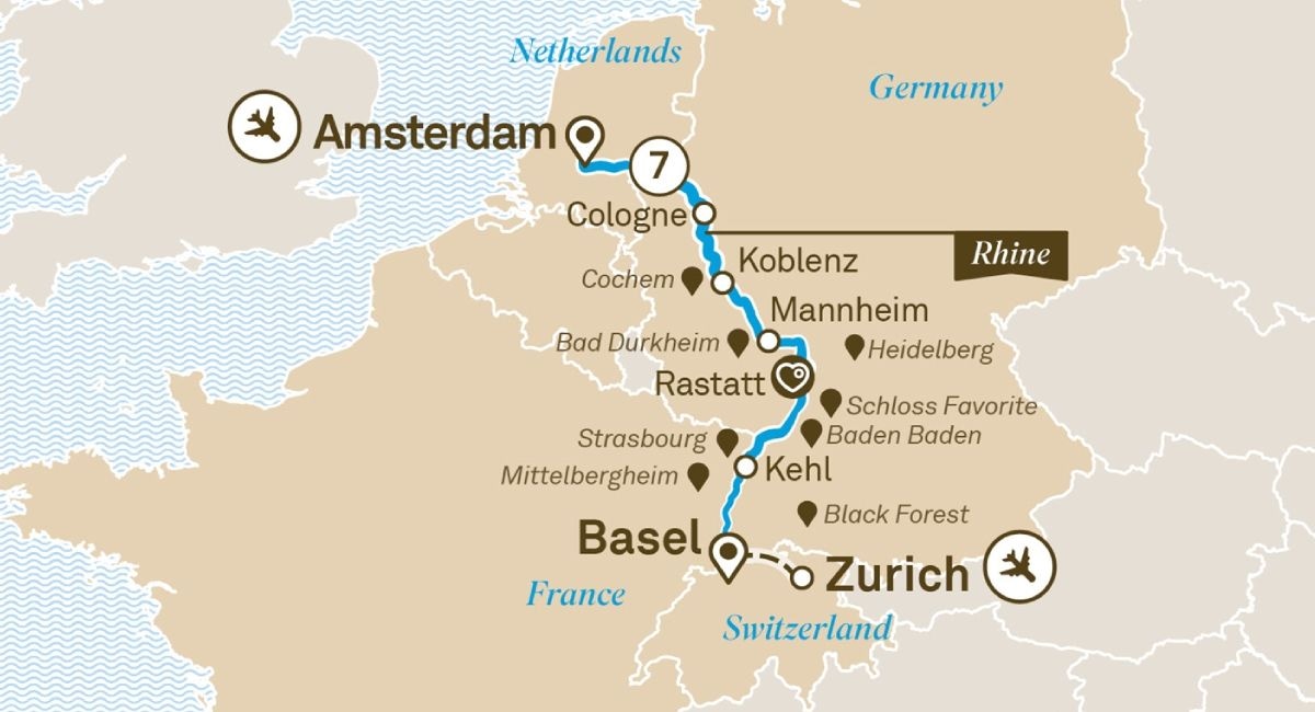 Navega hacia la ciudad suiza de Basilea mientras disfrutas del lujo con todo incluido en tu Scenic Space-Ship. Quedarás cautivado por la cultura, historia y paisaje a lo largo de las orillas de este caudaloso río, salpicado de pueblos eternos que exudan el romance de tiempos pasados. Explora la ciudad portuaria de Ámsterdam y sus canales legendarios; experimenta la mezcla de cultura alemana y francesa en Koblenz; deleitate con el encanto medieval de Cochem, rodeado de viñedos en pendiente; sumérjete en los manantiales naturales de Baden-Baden; y disfruta de la arquitectura en tonos pastel de Estrasburgo.